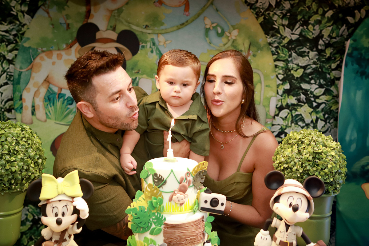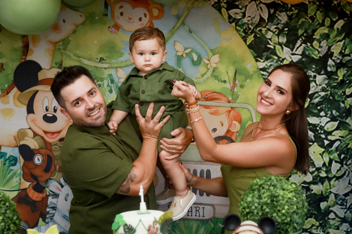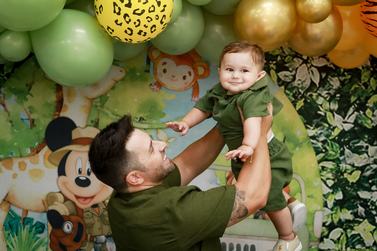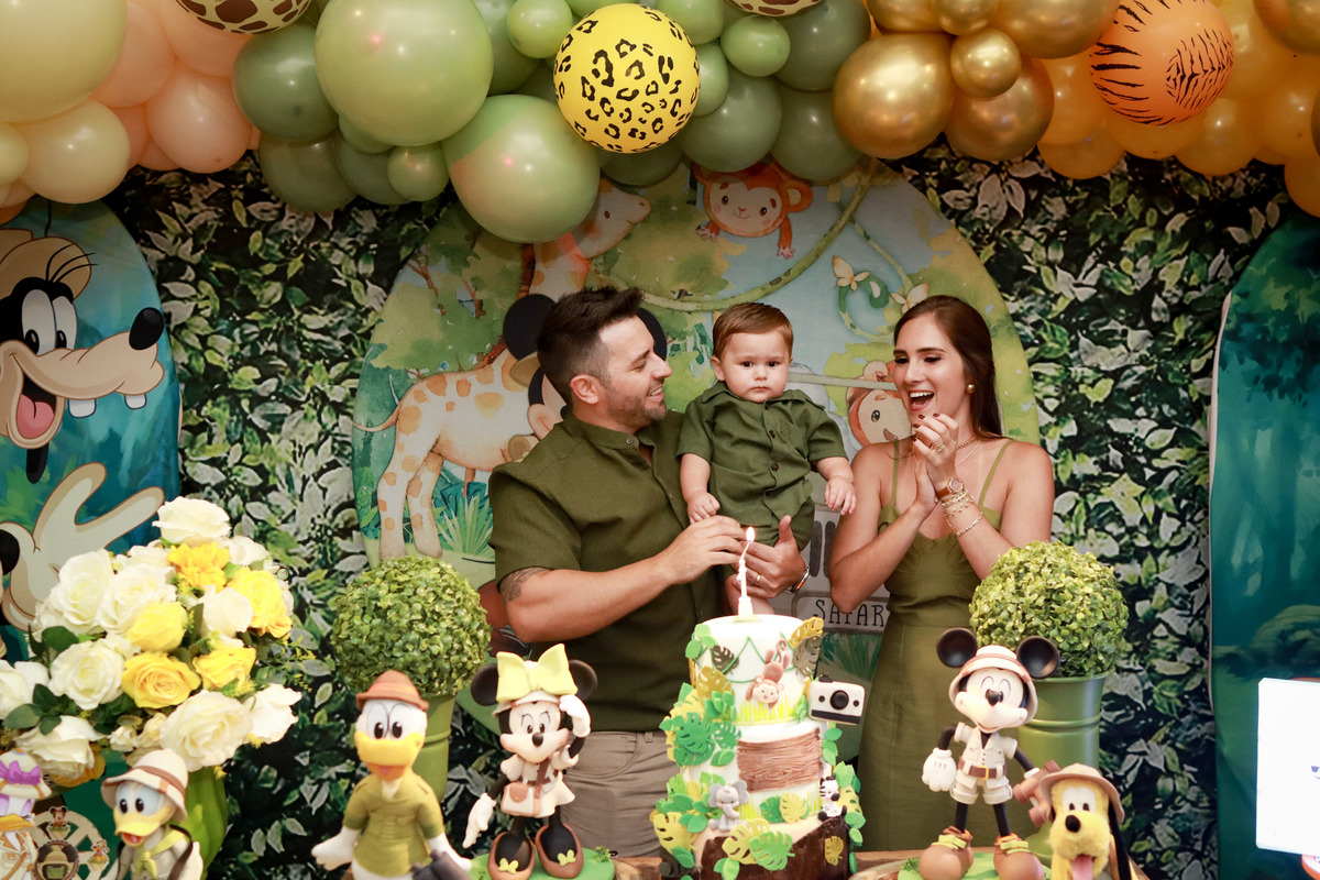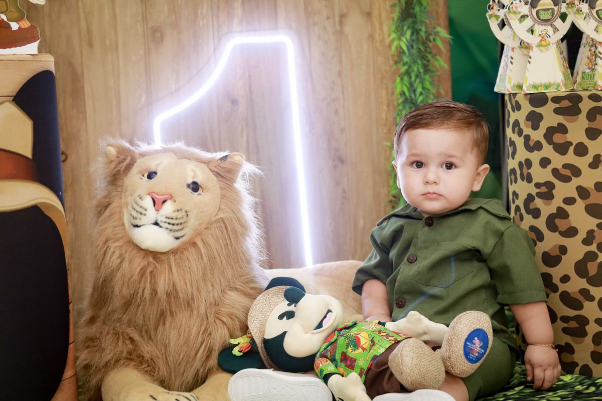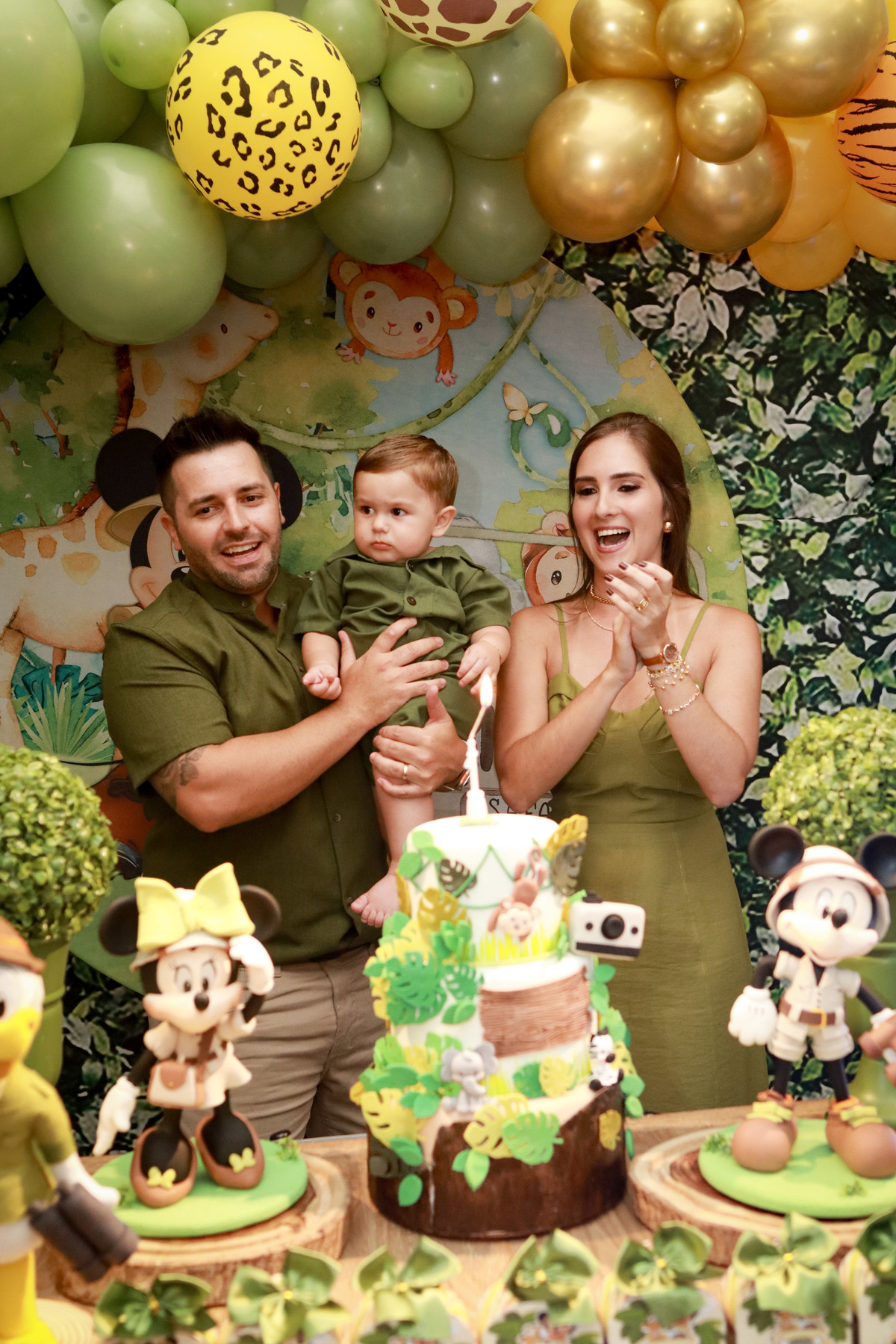 O primeiro aninho do Ravi foi celebrado com muita cor, alegria e uma verdadeira expedição pelo mundo da fantasia! Ao lado do papai e da mamãe, ele viveu um dia cheio de sorrisos, descobertas e muito amor, tudo em meio ao cenário encantador do Safari do Mickey.